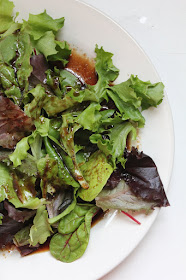 This dressing doesn't look as nice on a bed of plain old lettuce as it did on the strawberry spinach salad for which I made it, but since I didn't take a picture of the strawberry spinach salad (because, you know, I was too busy scarfing it), here's the dressing, at least.