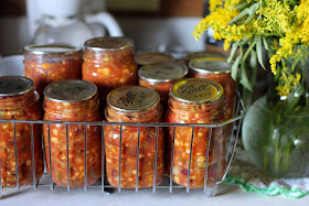 I only have this one picture of the salsa, so it'll have to do for now. As its name implies, this is a sweet and smoky salsa, not overly spicy. Next time I make it, I'll add more heat, but even as is, it's one of the most delicious salsas I've ever made. A big bonus is that it's full of ZUCCHINI! Any of you gardeners know that this is a good thing, especially in those days of laundry baskets overflowing with zucchini and neighbors who politely decline yet another baseball-sized zucchini bat.