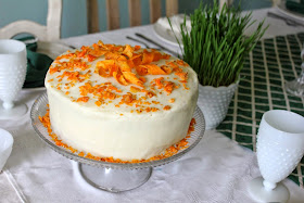 When I made it last Easter, I added a bit more grated carrot to the batter, as well as candied carrot curls and pieces as garnish. Also, I skipped the recipe's filling and just made extra cream cheese frosting to spread between the layers. The first time I made this cake, I followed the recipe exactly, and it was very good; I just use any excuse I can to get more cream cheese frosting in my belly. :)